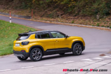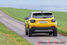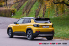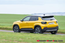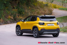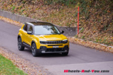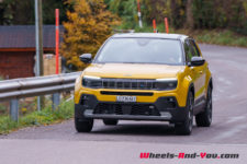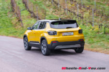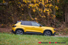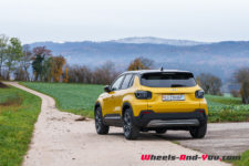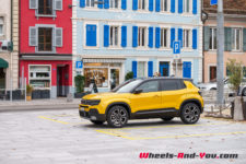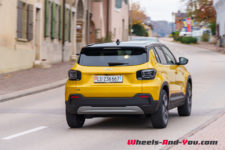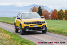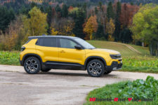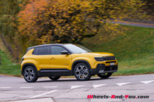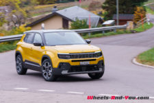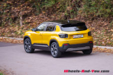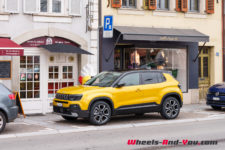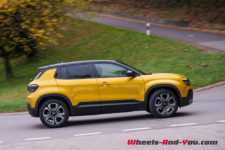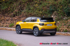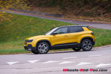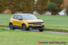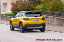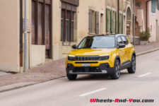 L’Avenger est actuellement disponible avec deux motorisations : un moteur à essence de 1.2 litre turbocompressé développant 100 ch et accouplé à une boîte de vitesses manuelle à 6 rapports et un propulseur électrique développant 156 ch (115 kW) dont je dispose pour cet essai. Il partage sa plateforme avec la Peugeot e-2008 et l’Opel Mokka Electric.
