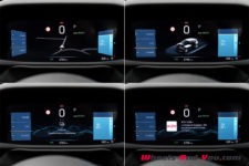 La planche de bord propose deux écrans de 26 cm chacun. Ils sont les deux paramétrables grâce à des widgets disponibles dans un « mur des applications ». On peut ainsi paramétrer six versions de l’écran placé derrière le volant et trois de l’écran central. L’infodivertissement, plutôt réactif, fait bonne figure même si j’aurais aimé certaines fonctions supplémentaires à commencer par un planificateur d’itinéraire avec recharge, une sélection de destinations récentes du GPS ou des statistiques de consommation autres que les seules 30, 60 ou 90 dernières minutes de roulage.