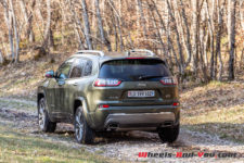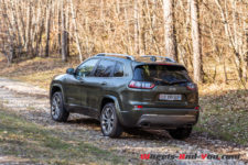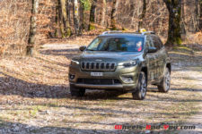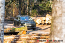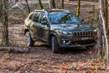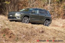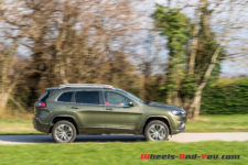 Dans le terrain, il a beau afficher la marque Jeep et disposer du système Jeep Activ Drive I à 4 roues motrices, ce Cherokee ne présente pas de réelles capacités de franchissement. Il se révèle par contre performant en tout chemin, même sur terrain boueux. Pour celui qui souhaite plus d’aptitudes au tout-terrain, il faut opter pour la version Trailhawk qui propose en option une boîte de transfert, un blocage de différentiel arrière, une garde au sol rehaussée et une capacité de gué de plus de 50 cm. Pour l’avoir découvert dans l’ancienne version V6, le véhicule offrait alors de véritables aptitudes de franchissement dignes de l’image de la marque.