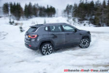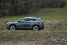 Le Compass roule partout malgré son poids. C’est en débranchant l’ESP que je peux entamer, sur une piste de neige, braquages et contre braquages pour constater l’équilibre remarquable de ce 4×4. Je suis bluffé. Le poids se fait oublier et notre voiture de test s’extrait d’ornières avec la facilité d’une Jeep débarquant en 1944 sur le sable de Normandie. Je rappelle que le Compass possède un blocage de différentiel et plusieurs modes (Auto, Snow, Sand, Mud) ce qui, face à pas mal de concurrents, le rend bien meilleur hors bitume. A noter également que la version Trailhawk propose en plus la position “Rock” pour crapahuter sur les rocher. Désormais, je ne regarde plus ce Compass de la même manière.