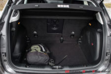 Le coffre possède un double plancher d’un volume très correct de 438 litres. Le hayon se ferme électriquement, un luxe bien pratique vu son poids. La banquette arrière est rabattable 40/20/40 à plat et possède une trappe à ski ainsi qu’un accoudoir pour gobelet. Détail sympa dans cette finition Limited Luxury Pack : l’éclairage extérieur quand on bip la voiture avec la clé ou quand on ouvre la porte. J’aime bien aussi les tapis de sol en caoutchouc d’une belle qualité. Une fois sales, ils se retirent aussi facilement qu’ils se rincent.