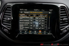 Le design des aérateurs centraux n’est pas à mon goût, mais ils remplissent leur tâche et encadrent un écran de 8.4 pouces. Ce dernier intègre CarPlay et Android Auto avec un jumelage smartphone des plus aisés. Le GPS est très réactif et la cartographie agréable. L’intérieur se veut différent de celui du Renegade pour toucher une clientèle moins «Jeepienne », plus SUV que 4×4 pur et dur.
