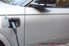 Avec un départ batterie chargée et avec un parcours ne dépassant pas 100 km, la consommation mesurée est de 9.0 l/100km. Sur autoroute, en actionnant le « e.save » afin de garder un peu de batterie pour circuler en zone urbaine, elle passe à 10.5 l/100km. Compte tenu des 2’650 kg à déplacer, c’est une valeur compréhensible qui, avec les 72 litres du réservoir, permet d’envisager un parcours approchant les 700 kilomètres.