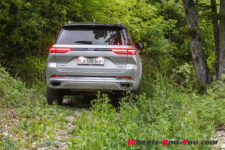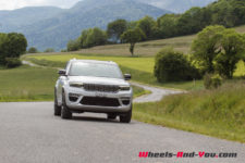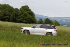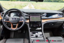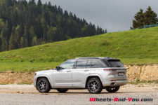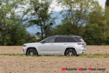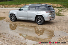 Les modes de conduites sont nombreux. Sur route, je peux rouler en mode sport, en « e.save », en hybride ou en électrique ; dès que le terrain change, il suffit de sélectionner les modes boue, neige ou roche. Alors autant vous dire que je me suis égaré dans des petits sentiers boueux comprenant quelques rochers. J’ai élevé la garde au sol offroad au maximum (28 cm) et enclenché la basse vitesse. J’ai utilisé la transmission 4×4, le différentiel électronique et la boite de transfert à deux vitesses. C’est impressionnant ; malgré les pneus routiers et son poids, ce Grand Cherokee évolue et se sort de terrain scabreux sans patinage. La suspension pneumatique Quadra-Lift (5 positions) et le couple des propulseurs 4 cylindres et électrique associés font merveille. Ne voulant rien abimer, je n’ai pas poussé le hors-piste plus loin mais le peu que j’ai pu constater ne laisse aucun doute : le Grand cherokee est taillé pour les grands espaces et rien ne semble l’arrêter, sauf les pneus en cas d’utilisation particulière.