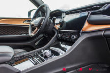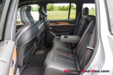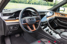C’est en stationnant à côté d’un Porsche Macan que je comprends mieux pourquoi on le nomme Grand Cherokee. Une vraie ligne de 4×4 qui, contrairement au Range Rover Sport qui s’est légèrement adouci au fil des ans, s’affirme toujours avec sa calandre bien carrée et ses gros rétroviseurs.