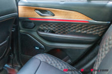 Du cuir jusqu’aux contre-portes, du vrai bois de chêne au touché naturel, quelques chromes, de magnifiques coutures, des assemblages dignes d’une allemande, j’entre dans un luxueux 4×4, dans l’esprit des marques britanniques. Un habitacles qui n’a pas à rougir de la concurrence.