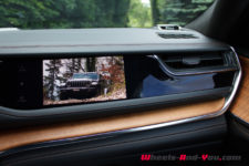 J’ai repris le bitume. Le moteur est rond, très coupleux. On « cruise » à 2’000 t/min à 120 km/h dans un silence qui vous pousse à profiter de l’extraordinaire chaîne hifi McIntosh munie de 19 haut-parleurs. Parfait pour utiliser la conduite semi-autonome de niveau 2. Je sélectionne le « e.save » et appuie sur le bouton de recharge. Je pensais pouvoir recharger rapidement en roulant vite mais que nenni. Cette technologie « e-Coasting » récupère l’énergie cinétique lors des phases de freinage, de décélération et de passage en roue libre. On recharge donc moins sur autoroute qu’en ville ou sur la route. Une fois la nuit tombée, j’active la caméra de vision nocturne qui s’affiche sur l’écran central ; un gain de sécurité impressionnant. Globalement, cette 5ème génération du Grand Cherokee permet de voyager loin autant sur route que sur autoroute et s’insère facilement en ville si besoin.