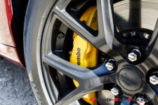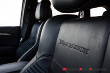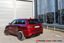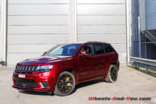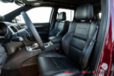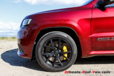 Le Grand Cherokee Trackhawk se distingue notamment par les quatre sorties d’échappement, des freins Brembo, les jantes 20 pouces peintes en noir et quelques petits détails esthétiques spécifiques.