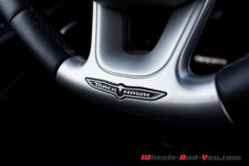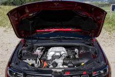 Passons aux choses sérieuses. Si le SRT offrait 468 ch, ici le V8 HEMI 6.2 compresseur développe 710 ch à 6’000 t/min pour un couple camionesque de 868 Nm à 4’800 t/min. Cette mécanique est couplée à une boite automatique ZF 8 rapports aux paramétrages spécifiquement revus pour ce Trackhawk. L’ensemble est homogène et propose un agrément en adéquation avec la voiture.