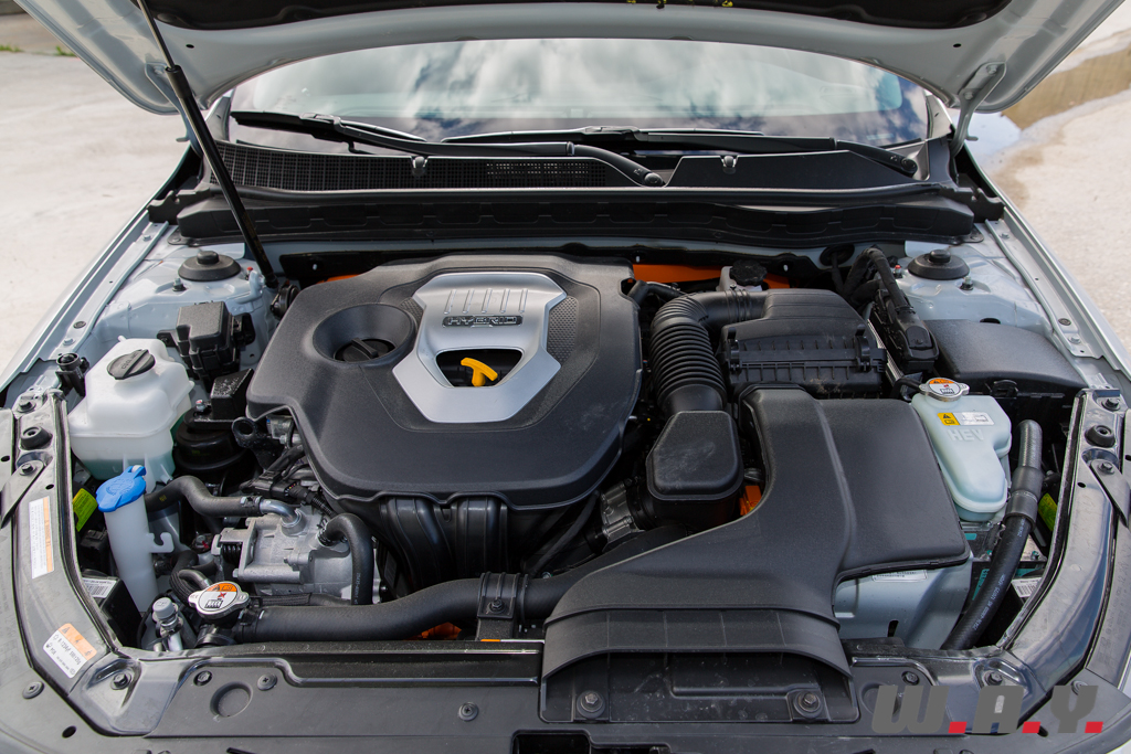 Le système hybride de la Kia Optima est composé d’un moteur essence quatre cylindres de 2 litres développant 150 chevaux et d’un moteur électrique de 40 chevaux alimenté par des batteries lithium polymère. Kia a opté pour une technologie dite « parallèle », c’est à dire que le moteur essence et le moteur électrique peuvent fonctionner individuellement ou simultanément. Le tout entraîne les roues avant et est accouplé à une boîte de vitesses automatique conventionnelle à six rapports, sans le traditionnel convertisseur de couple. Un ingénieux système simple et économe.