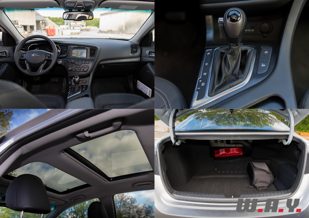 La position de conduite est sans reproche. Volant en main, le comportement s’avère sain. J’aurais pourtant apprécié une direction un peu moins floue. L’amortissement offre un confort optimum, à peine mis à mal lorsque que la route se dégrade. Il est superflu de vouloir pousser l’Optima dans ses derniers retranchements, ce n’est pas sa vocation. A son volant on a plutôt envie de pratiquer l’éco conduite. La boîte de vitesses automatique particulièrement douce, associée à une isolation phonique remarquable et un confort de premier ordre apportent un réel sentiment de quiétude.