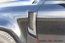 Les dimensions sont importantes : 5.02 m de longueur avec la roue de secours sur la face arrière, 2.01 m de largeur et 1.97 m de hauteur. Quant au poids, il est conséquent avec 2’620 kg à vide et 2’835 kg avec tous les pleins faits et le conducteur.