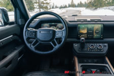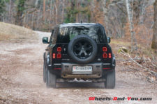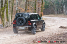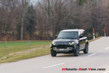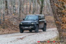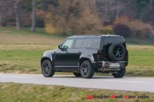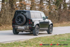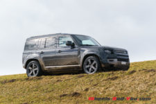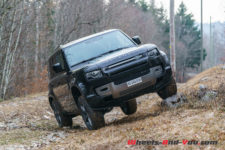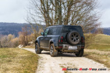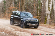 Pour la séance photo, nous trouvons un talus humide et pentu. Mon collègue sélectionne le mode boue et la gamme courte, et là encore, le Defender franchit l’obstacle sans sourciller. Reste que la conduite dans ces conditions est assez inhabituelle car l’électronique gère en permanence l’adhérence et ce n’est pas évident de ressentir ce qui se passe, où se trouve la limite du grip. Il faut cependant admettre qu’indépendamment d’évidentes qualités tout terrain, les propriétaires d’un tel véhicule dont le premier prix dépasse les CHF 95’000.- seront sans doute peu nombreux à lui faire quitter le goudron.