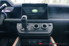 Dès sa présentation, le nouveau Defender prend le contre-pied des autres véhicules de la marque quant à l’ergonomie intérieure. Les Velar, Evoque et Range Rover, dont nous devrions vous proposer une essai prochainement, disposent tous de deux écrans superposés sur la console centrale, celui du bas regroupant presque toutes les commandes. Dans le Defender, si un écran a remplacé les compteurs, la console centrale n’en arbore qu’un et les commandes, regroupées au-dessous, demeurent physiques pour la plupart, ce que j’apprécie personnellement.