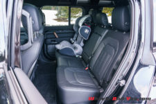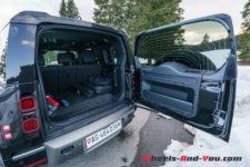 Par rapport à un Defender 110 P400 thermique, rien de particulier à relever à l’extérieur si ce n’est une deuxième trappe sur l’aile arrière gauche pour la prise de recharge et deux badges « Plug-in Hybrid » sur les montants centraux. Mon véhicule de test arbore une livrée « Full Black» plutôt spectaculaire et même si je ne suis pas un fan des véhicules noirs, je reconnais que cela lui donne un côté impressionnant.