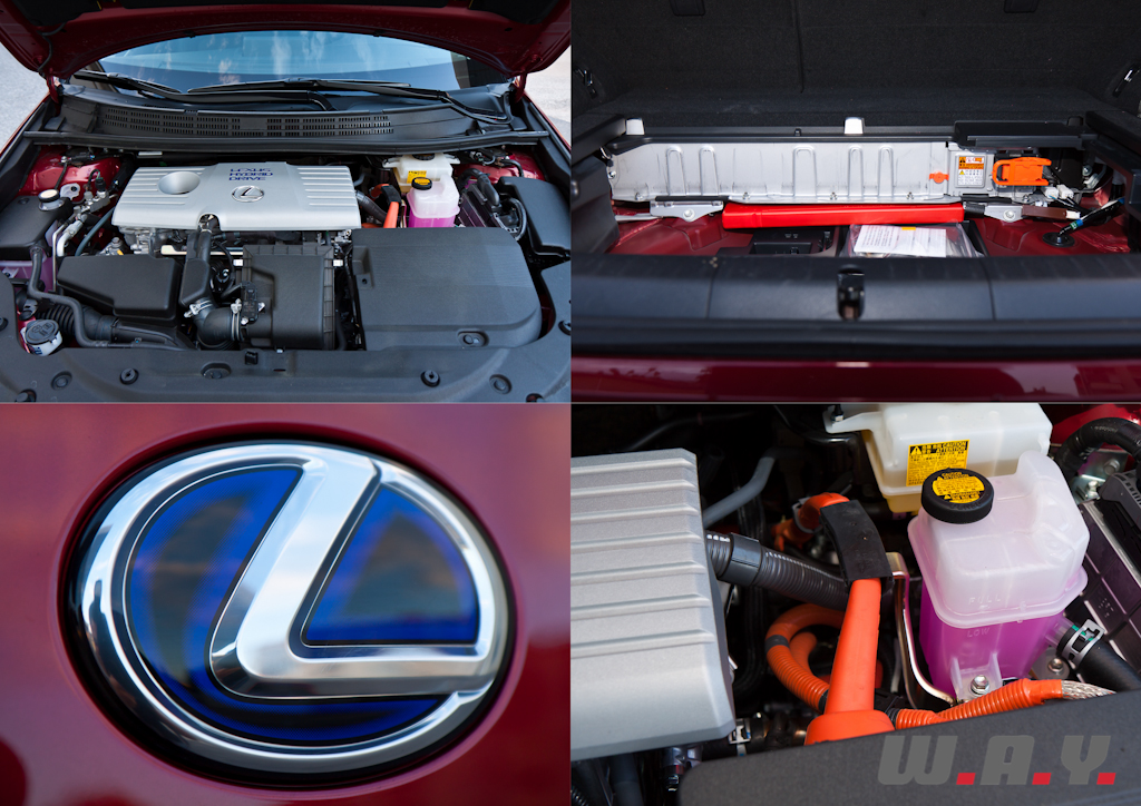 Donc nous y trouvons un moteur thermique de 1,8 litres de cylindrée et développant 99 CV et 142 Nm de couple, accouplé à un moteur électrique de 82 CV et 207 Nm. L’ensemble offre donc une puissance totale de 136 CV affichant des qualités environnementales de premier ordre : une consommation annoncée de 3.8 l. à 4.1 l./100 km, 87 g/km à 94 g/km pour les émissions de CO2 et un taux de rejets de NOX et de particules négligeable, dépendant du choix de la monte pneumatique. La propulsion est gérée par une unité centrale appelée PCU, en fonction du mode de conduite désiré (normal, « tout électrique » ou sport). Elle veille en permanence à la répartition des ressources énergétiques du système hybride ainsi qu’au niveau de charge de la batterie, garantissant ainsi à tout moment une efficacité optimale. La batterie au nickel-métal hydrure est logée au-dessus de l’essieu arrière afin de favoriser la répartition des masses.