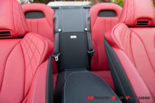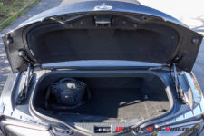 Les places arrière ne sont pas faciles d’accès, nous sommes bien dans une 2+2, mais, si vous faite moins d’1m80, elles sont étonnamment confortables pour ce type d’auto. Néanmoins pour y accéder il faut prévoir de la place sur les côtés afin de pouvoir ouvrir complètement les grandes et lourdes portières. Le coffre, avec ses 149 litres n’est pas très grand, juste de quoi y mettre son sac de golf. Mais, avec les petites places arrière en plus, c’est largement suffisant pour ce style de voiture.