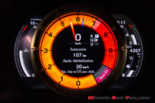 J’adore la vie au quotidien dans cette voiture d’exception. Seul petit détail agaçant : la rétro-vision la nuit venue est gênée par des reflets que le petit saut de vent en plexiglass renvoie. Les panneaux et autres poteaux qu’éclairent les phares s’y réverbèrent. Un petit filet tressé noir aurait été préférable. Pour ne pas rester sur une note négative, je ré-appuie sur le poussoir « On » en mode Sport S+, je mets gaz jusqu’à la zone rouge et, bêtement, je ris.