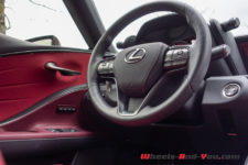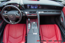Un différentiel à glissement limité Torsen aide bien en cela car il optimise le couple et l’adhérence. Par ailleurs, pour bien aborder certaines épingles, les roues arrière sont directrices (DRS), associées au LDH (Lexus Dynamic Handling) qui combine la gestion de la direction à démultiplication variable en fonction de la vitesse, de l’angle de braquage et des actions du conducteur. Ce système calcule l’angle optimal des quatre roues pour optimiser les changements de direction, l’adhérence du train arrière, la stabilité et l’agilité en virage. Avec toute cette technologie, rares sont les fois où l’arrière glisse en tentant de se dérober, même si l’on a le pied lourd. Le couple de 540 Nm arrive mais la voiture reste en ligne, comme rivée au sol. Je perçois, au fil des kilomètres, l’étendue du travail accompli par les ingénieurs japonais avec un réglage châssis remarquable. J’ai même parfois l’impression de survoler la route. Cela me rappelle un essai déjà lointain d’une certaine Mercedes SLS AMG. A l’époque, j’avais déjà été bluffé.