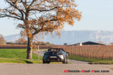 L’arrière, avec ses larges hanches, une ligne de coffre relevée et ses feux intégrés, est un peu plus tortueux. Pour certains cela fait trop tuning. A chacun d’apprécier, ou pas. Pour ma part, j’y retrouve le plaisir, comme sur certaines 911, de voir dans les rétros ces impressionnantes ailes arrière. Je suis prudent dans les petites ruelles des villages vaudois car même une fois l’avant engagé, j’ai l’impression que l’arrière ne va pas suivre. Et si ce design très japonais était en avance sur son temps ?