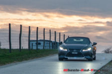 J’essaye donc un maximum de préserver les freins en jouant du frein moteur. De ce fait, avec ce style de conduite, je ne suis jamais contrarié. Je roule cheveux au vent et enchaîne les virages avec un plaisir certain. Toutefois, il ne faut pas demander au train avant d’être aussi chirurgical que celui d’une 911. La direction a démultiplication variable (VGRS) bien précise demeure artificielle, je m’attendais à un ressenti plus direct. La voiture se place bien à la corde avec de légers mouvements de caisse liés au poids, mais cela reste bien maîtrisé.