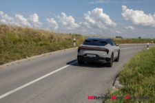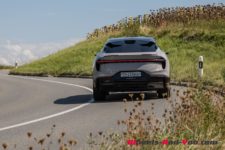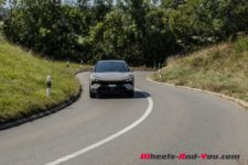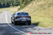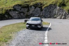Prenant possession de ce Lotus Eletre dans la région de Zurich, je démarre mon périple en prenant la direction du col du Klausen, bien connu des propriétaires de Lotus Elise. Etroit et sinueux, il est approprié pour la petite sportive. La route est quasiment déserte en ce lundi matin et je peux aborder les sections les plus étroites sans trop d’appréhension, la taille de la voiture imposant le respect. Son terrain de jeu n’est assurément pas le Klausen ni les parkings en ville ! Le comportement est très rigoureux. Sur route bosselée, l’auto avale les aspérités et garde sa trajectoire, démontrant une bonne gestion des suspensions actives.