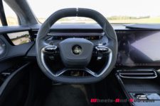 KEF fournit le système audio qui fonctionne très bien, avec notamment le Dolby Atmos en série. L’électronique de bord est très réactive, basée sur un système appelé Lotus Hyper OS. Les aides à la conduite sont assurées par des processeurs Nvidia. La qualité de la réalisation de cet ensemble de softwares est de bon niveau.