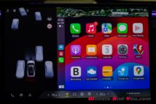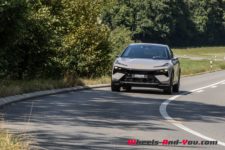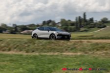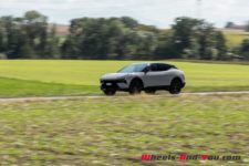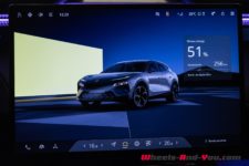 Je constate également que le software, dans l’ensemble bien léché, demande encore quelques petits ajustements. Certains bugs sont comiques, avec par exemple le bip du clignotant qui hoquette parfois. Il arrive aussi que sur route bien plane, on ait des vibrations au volant. Peut-être des détails spécifique à notre voiture de presse, ça serait à vérifier avec un modèle chez un concessionnaire. L’affichage tête haute est très complet et très lumineux, c’est un très bon complément aux écrans à bord.