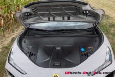 La batterie Lithium-Ion installée sous le plancher fonctionne à une tension nominale de 800V et offre une capacité brute de 111.9 kWh (109 kWh net). Le système de charge rapide en courant continu accepte jusqu’à 350 kW alors qu’en courant alternatif, c’est 22 kW. Lors de notre test de charge sur une borne fournissant 350 kW, nous n’avons pas dépassé les 260 kW, ce qui est tout de même une excellente valeur. Lors de ce test, il a fallu 57 minutes et 10 secondes pour charger de 3% à 100%. Pour passer de 10% à 80%, il n’a fallu que 22 minutes et 18 secondes, soit 2 minutes de plus que le temps annoncé par Lotus. La température extérieure était alors de 26 degrés.