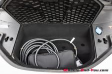 Ma consommation sur les 900 km d’essai atteint 25.1 kWh/100km. Le maximum de 26.1 kWh/100km a été mesuré sur un mix d’autoroute, de routes principales et de ville. Le minimum de 22.8 kWh/100km résulte d’un trajet autoroutier de 255 km avalé à 85 km/h de moyenne. L’autonomie théorique sur ce tronçon s’élève à 478 km. Cette consommation est plutôt élevée malgré des conditions de température favorables lors de cet essai. Le poids de l’engin y est sans doute pour quelque chose.