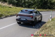 Son look est celui d’un SUV coupé aux propriétés aérodynamiques très travaillées, qui lui valent un Cx de 0.26. On note des éléments actifs à l’avant comme à l’arrière, avec un spoiler mobile et deux mini spoilers en haut de la vitre arrière. A l’avant, la calandre possède 7 groupes de 6 éléments triangulaires qui peuvent s’ouvrir pour ventiler les radiateurs et les freins en fonction de la demande.