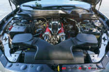 Comme je le disais au début de cet article, cette Ghibli Trofeo est animée par un V8 conçu et assemblé chez Ferrari, dérivé de la Portofino et de la Roma. Le majestueux moteur 3.8l propose, tout comme sur le Levante Trofeo, une puissance de 580 ch pour un couple maximum de 730 Nm. Il a aussi l’avantage d’être extrêmement beau à regarder avec ses culasses peintes en rouge.
