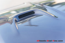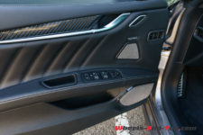 Je note quand même les grosses jantes, les quatre sorties d’échappement et quelques éléments en carbone, mais aussi les prises d’air sur le capot et une calandre un tantinet plus agressive. Finalement, ce sont surtout les badges Trofeo sur les flancs et quelques partie traitées en rouge, comme l’entourage des ouïes latérales, qui permettront de distinguer cette version d’une Ghibli normale.