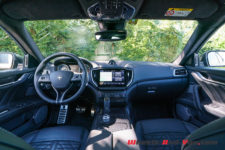 Je débute cet essai avec un plaisir non dissimulé, tant les caractéristiques de cette Ghibli Trofeo me parlent. En partant de Zürich, mon trajet exclusivement autoroutier pour rejoindre la Suisse Romande me permet de constater immédiatement l’excellent agrément que notre italienne propose. Comme je le disais précédemment, c’est extrêmement confortable et on oublie très vite qu’on est aux commandes d’un modèle surpuissant.