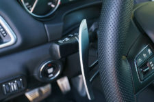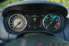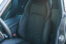 En m’installant à bord, je constate une nouvelle fois qu’on n’est pas tombé dans l’extravagant, mais qu’on se démarque quand même un peu de la concurrence. A l’exception de quelques plastiques peu gracieux, la présentation est de très bonne facture, avec des matériaux de qualité. Grâce à une isolation phonique impressionnante, l’ambiance est feutrée et vous permet de cruiser à bon rythme en toute quiétude dans un confort indéniable. Je fais notamment un aller-retour Genève/Zürich, je vous garantis que c’est royal. Pour pinailler, je dirais juste que ça manque de piquant pour une mouture Trofeo.