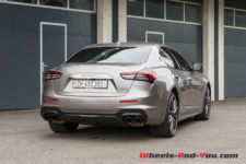 Notre Ghibli est basée sur le modèle 2017 avec, en sus, les quelques modifications opérées en 2020 lors de la présentation de la Trofeo, comme les nouveaux feux arrière qui arborent une signature lumineuse à la forme d’un boomerang, un petit clin d’œil à la 3200 GT. Sur le principe je ne peux qu’apprécier l’idée, mais en réalité, lorsque je regarde l’arrière de l’auto, d’une part je ne retrouve pas l’identité unique du feu coupé et surtout je trouve que l’ensemble fait très japonais. Potentiellement, c’est une question de goût, je vous laisserai donc juger à l’aide des photos.