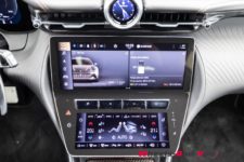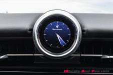 Deux écrans tactiles sont placés l’un sur l’autre au centre de la planche de bord, séparés par les boutons de sélection de la transmission P, R, N, D. L’écran supérieur permet d’accéder à toutes les fonctions de l’infodivertissement et les différents menus de réglages de la voiture. Le deuxième, placé en-dessous et incliné, donne accès aux réglages de la climatisation, du chauffage et de la ventilation des sièges. La pendulette a perdu sa forme ovale et est passée au monde numérique ; elle affiche le logo Maserati au démarrage, puis une montre analogique sur fond bleu ensuite. Derrière le volant, un troisième écran affiche les informations liées à la conduite.