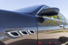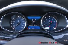 Les ailes arborent la signature esthétique de Maserati : trois ouïes qui rappellent les sorties d’échappement des sportives d’antan. Derrière les deux portes latérales de belles dimensions, la malle arrière est longue et plutôt basse sans que le porte-à-faux soit immense. De profil, la voiture est effilée et harmonieuse, sans faute de goût.