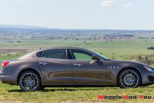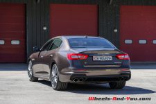 Force est de reconnaître qu’avec ses plus de 5.25 mètres de longueur et son empattement de 3.17 mètres, la Quattroporte en impose. Véritable limousine par ses dimensions, son profil est toutefois plus fin que ceux de bon nombre de modèles du même gabarit et fait hésiter entre limousine et Grand Tourisme.