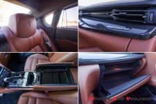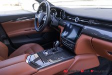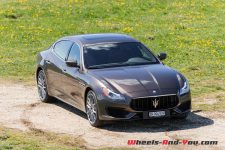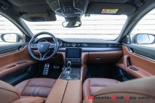 Côté comportement, je suis un peu mitigé sur les réglages de l’amortissement retenus par les ingénieurs de Maserati. En mode normal, la voiture est très souple et rebondit excessivement sur les gendarmes couchés et autres grosses dépressions. En mode sport, la voiture se durcit sensiblement et transmets à ses occupants la moindre petite aspérité de la chaussée, dégradant le confort. Elle demeure toutefois trop souple sur les gros appuis et l’efficacité en pâtit. Les roues de 21’’ chaussées de pneus à taille très basse ne sont pas étrangères à ce constat. Je pense que d’autres réglages, en adoptant par exemple plus de compression basse vitesse, auraient offert un confort bien supérieur.