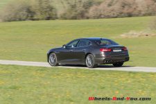 En résumé, je dirais que le comportement n’est pas vraiment sportif même si la Quattroporte est capable de moyennes phénoménales. Toutefois, la voiture demeure très sécurisante, notamment grâce à son empattement élevé. A la limite, elle sous-vire légèrement et l’électronique restreint immédiatement les ardeurs excessives.
