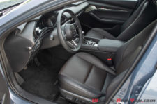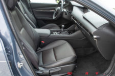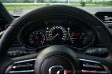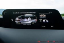 En termes de sécurité, cette Mazda 3 vient d’obtenir le maximum de 5 étoiles aux deniers crash tests NCAP. Par ailleurs, elle profite de toutes les dernières technologies d’aide à la conduite. Comme d’habitude, je déconnecte le système de détection de franchissement de ligne qui est, pour moi, vraiment trop intrusif. La nuit venue, l’éclairage intérieur très doux est relaxant et les phares éclairent la route comme en plein jour. L’affichage tête haute est très discret et affiche la vitesse limite, la vitesse et les informations d’itinéraire à suivre quand le GPS est en action.