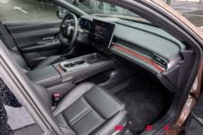 L’ergonomie est en phase : sièges confortables, commande de transmission « à l’américaine » – avec un levier situé à la place du commodo droit, derrière le volant – régulateur de vitesse actionné avec le même levier, affichage tête-haute. Tout est fait pour faciliter la vie du conducteur. Je regrette toutefois deux points : l’absence d’un système OnePedal menant à l’arrêt complet au levé du pied et la difficulté à désactiver certaines assistances trop intrusives, comme le maintien de voie, qui nécessite entre 3 et 5 actions sur l’écran central pour chacune. Heureusement, le volant comporte deux touches de raccourci programmables qui facilitent l’accès à deux fonctions à choix. Autre point qui m’a déplu : l’absence de position neutre de la pédale d’accélérateur. Impossible de maintenir une vitesse constante en légère descente ; soit la voiture accélère, soit elle régénère de l’énergie, provoquant des à-coups constants. Ce défaut devrait toutefois pouvoir être corrigé par une mise à jour du logiciel système.