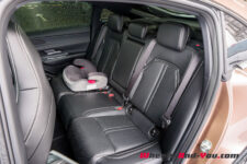 L’espace est véritablement généreux, autant à l’avant qu’à l’arrière. Même les passagers de plus de 1.85 mètres disposent d’assez d’espace aux genoux autant que de garde au toit. Quant au coffre, il est long mais pas très profond, totalisant 466 litres. En baissant les sièges arrière, il atteint 1’074 litres, auxquels s’ajoutent les 72 litres du « frunk » situé sous le capot avant.