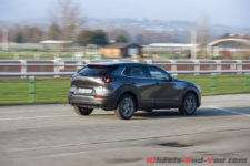 En terme d’équipement, ce CX-30 ne fait pas dans la demi-mesure et offre, en plus de ceux cités précédemment, le freinage d’urgence urbain, un régulateur de vitesse actif, la fonction limiteur de vitesse, l’alerte des angles morts, une alerte crevaison, la lecture des panneaux, la gestion automatique des feux de croisement/plein phare, des phares LED adaptatifs, des essuie-glaces dégivrants, des sièges électriques, le volant chauffant, un système de caméras 360 degrés, etc… une pléthore de technologie et de fonctionnalité, c’est digne du segment premium.