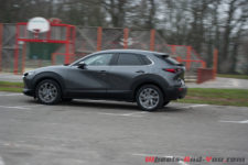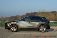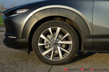 Ce CX-30 présente un profil bas pour un SUV, il serait même plus juste de parler de carrosserie crossover. J’exagérerais à peine en écrivant qu’il s’agit presque d’une Mazda 3 surélevée.