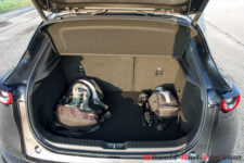 Le coffre offre une belle capacité de chargement avec ses 430 litres, suffisant pour quatre personnes. Par contre, il est dommage de ne pas pouvoir rabattre les sièges arrière depuis le coffre et que la banquette ne soit pas coulissante. Plus généralement, le CX-30 dispose de nombreux rangements rendant pratique la vie à bord.