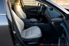 On retrouve toujours la culture du Kodo Design où minimalisme, pureté et élégance dominent. La carrosserie présente des passages de roue et des bas de caisse en plastique assez épais et aux grains fins et se nettoyant assez facilement, contrairement à d’autres marques.