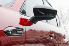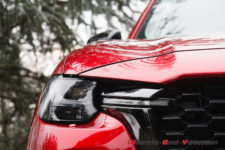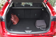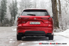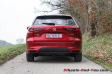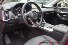 Notre véhicule d’essai arbore la couleur emblématique de la marque Mazda, le « Soul Red Crystal ». Du coup, de loin, j’ai cru que j’allais essayer à nouveau un CX-5 car l’identité styliste de la marque est conservée et le design très semblable. en m’approchant, je constate toutefois rapidement la différence de gabarit.