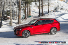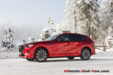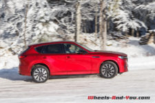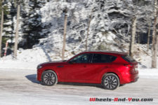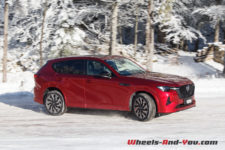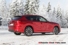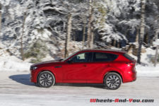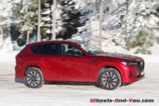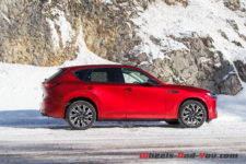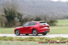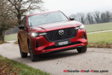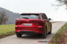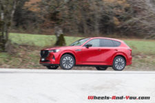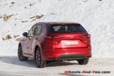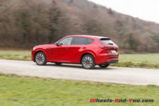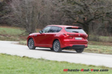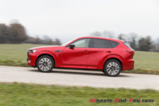En termes de tenue de route, cette suspension ferme, bénéficiant de doubles triangles à l’avant, apporte rigueur et précision. La nouvelle plateforme PMA, associée à une transmission intégrale orientée propulsion, est homogène. sans être vif, le CX-60 n’est pas à la traine sur routes sinueuses, et cela malgré un bel empattement.